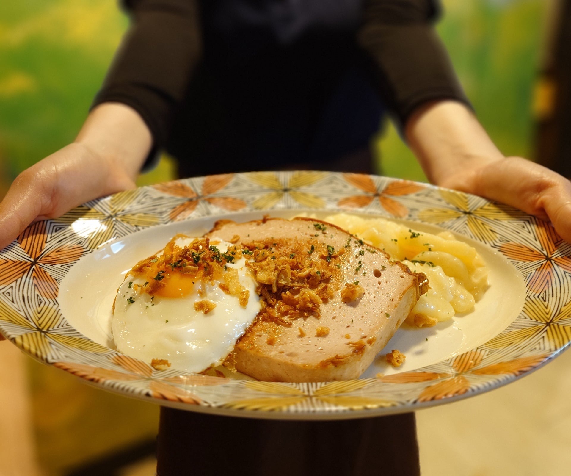 定番のフライシュケーゼはフライパンで焼いて、半熟の目玉焼きと一緒に食べるのがオススメです♪